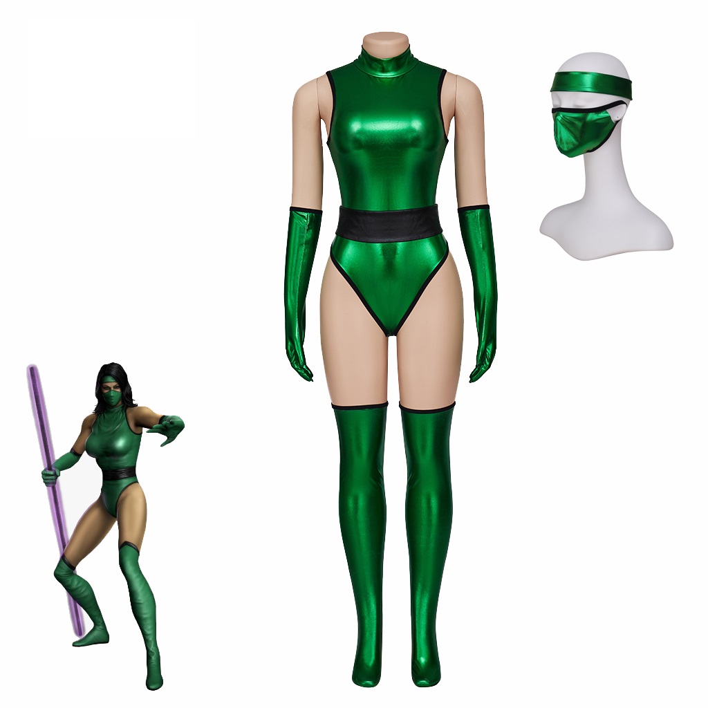 Mortal Kombat Jade Cosplay Costumes Green Jumpsuit with Mask Gloves Halloween Carnival Party Suit